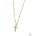 Dusted in dainty white rhinestones, a glistening gold cross pendant glides below the neckline from an abstract gold chain for a dazzling, divine display. Features an adjustable clasp closure.
