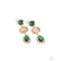 Featuring linear and sunburst-textured gold frames, a collection of round and teardrop Aventurine gems is interrupted by an emerald-cut champagne gem as each shape cascades and connects below the ear for an eye-catching lure. Earring attaches to a standard post fitting.