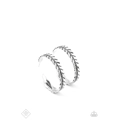 A twisted metal bar lines the center of an elongated silver feather as it curls into a rustic hoop for a free-spirited look. Earring attaches to a standard post fitting. Hoop measures approximately 2” in diameter.