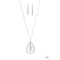 Dotted with rectangular brown beads, an airy silver leaf pendant swings from the bottom of a lengthened silver chain for a seasonal look. Features an adjustable clasp closure.