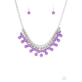 Rows of classic silver and vivacious purple beads trickle from two rows of interlocking silver chains, creating a bold colorful fringe below the collar. Features and adjustable clasp closure.