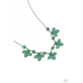Encased in textured silver frames, a faceted collection of round and teardrop Leprechaun beads delicately blooms into leafy frames below the collar for a refreshing pop of color. Features an adjustable clasp closure.