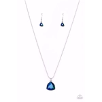 Featuring a green UV finish, a faceted asymmetrical blue gem is encased in a sleek silver frame at the bottom of a silver popcorn chain for a stellar fashion. Features an adjustable clasp closure.