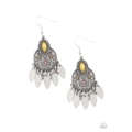 Dainty pink and Willow beads are sprinkled across the front of a rounded frame filled with vine-like filigree. Crowned with a marquise Willow bead, the whimsical frame gives way to a fringe of flat silver marquise-shaped discs and dainty silver leaf charms for a musical finish. Earring attaches to a standard fishhook fitting.