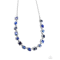 Featuring various shades of blue, subtly textured circle, teardrop, and emerald-cut silver frames connect around the neckline for a glittering display of eye-catching color and detail. Features an adjustable clasp closure.