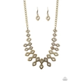 Brushed in an antiqued shimmer, glistening diamond-shaped brass frames link below the collar, coalescing into an edgy geometric fringe. Features an adjustable clasp closure.