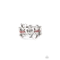 Infused with a row of fiery red rhinestones, a trio of airy silver hearts slant across three silver bands that layer into a charming centerpiece atop the finger. Features a stretchy band for a flexible fit.