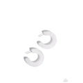Thick, milky white acrylic frames snugly loop and curl just below the ear for a fashionable finish. Earring attaches to a standard post fitting. Hoop measures approximately 1 1/2" in diameter.