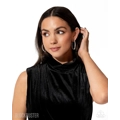 The front facing surface of a chunky gunmetal hoop is dipped in brilliantly sparkling rhinestones while light-catching texture wraps around the back. The interior of the hoop features the opposite pattern, creating the illusion of a full hoop of blinding rhinestones. Earring attaches to a standard post fitting. Hoop measures 1 3/4" in diameter.