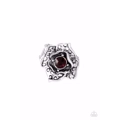 Featuring airy cut-out textures, antiqued silver petals gather around a glowing purple rhinestone center for a whimsical look. Features a stretchy band for a flexible fit.