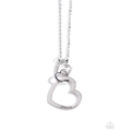 A silver heart engraved with the word "Grandma," dangles from two smaller hearts at the bottom of a lengthened silver chain. The first heart is accented with sparkly white rhinestones creating an affectionately sentimental pendant. Features an adjustable clasp closure.