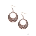 Brushed in an antiqued shimmer, vine-like filigree climbs a copper hoop for a seasonal look. Earring attaches to a standard fishhook fitting.