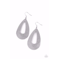 Delicately hammered in endless silver shimmer, a flat glistening oval silhouette swings from the ear for a beautiful basic look. Earring attaches to a standard fishhook fitting.