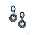 Brushed in a colorful faux marble finish, shiny blue hoops connect to a larger frame for a retro look. Earring attaches to a standard post fitting.