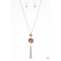 Swinging from the bottom of a glistening silver chain, glowing stacked moonstone pendants give way to a shimmery silver tassel for a refined look. Features an adjustable clasp closure.
