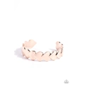 Oversized rose gold hearts delicately overlap around the wrist, stacking into a flirtatious cuff.