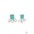 Encased in sleek silver frames, a trio of marquise white stones fan out from the bottom of a square turquoise stone for an earthy flair. Earring attaches to a standard post fitting.