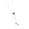 Bordered in dainty white rhinestones, a smoky, square-cut gem is pressed into a silver square fitting. The glitzy pendant slides along a strand of silver snake chain with smaller copies of the square pendant on each end of the adjustable strand for a seasonally edgy look. Features a bolo closure.