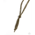 Strands of long rustic brass chains in curb and classic styles are pulled together in a sassy knot creating a show-stopping fringe pendant tassel. Features an adjustable clasp closure.