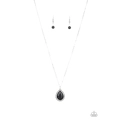 A black teardrop bead is nestled inside a dainty hematite rhinestone encrusted frame, creating a glamorous pendant below the collar. Features an adjustable clasp closure.