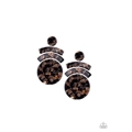 Featuring a faux-marble finish, shiny acrylic frames link into an abstract lure for a retro look. Earring attaches to a standard post fitting. Color may vary.