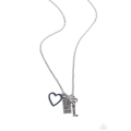 Dotted in dainty navy beads, an airy heart frame joins a silver rectangle stamped in the biblical passage, "As for me and my house we will serve the Lord," a dainty white gem, and an intricate silver key stamped in, "Joshua 24:15," along the bottom of a lengthened silver chain, creating an inspirational pendant. Features an adjustable clasp closure.