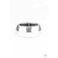 Featuring an edgy geometric faceted surface, a thick silver band arcs across the finger. Features a stretchy band for a flexible fit.