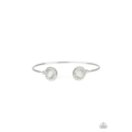 Featuring glowing white cat's eye stones, glittery white rhinestone encrusted fittings dot the ends of a dainty silver cuff for a refined flair.