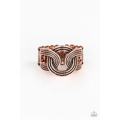 Stamped in linear patterns, glistening copper frames link across the finger for a casual look. Features a stretchy band for a flexible fit.