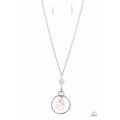 A chiseled piece of white stone swings from the top of interconnected silver hoops. Infused with an additional hammered hoop and hammered silver disc, the stacked pendant attaches to the bottom of a bulky silver chain for an authentic artisan-inspired vibe. Features an adjustable clasp closure. As the stone elements in this piece are natural, some color variation is normal.