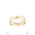 Striking gold bars delicately knot at the top and bottom of the wrist, resulting in a sultry bangle-like bracelet that's brushed in high-sheen shimmer. Features a hinged closure.