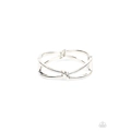 Striking silver bars delicately knot at the top and bottom of the wrist, resulting in an edgy bangle-like bracelet. Features a hinged closure.