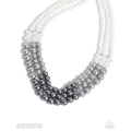 Strands of white, silver, and dark gray pearls elegantly drape below the collar, creating a beautiful ombre effect. Sectioned by silver accents, the luminescent pearls radiantly fall into a glamorous cascade. Features an adjustable clasp closure.