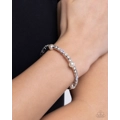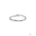 Pressed in silver square fittings, a trio of white gems alternate with elevated marquise-cut gems and glossy white pearls coalescing into a glittery silver cuff that delicately wraps around the wrist for a radiantly refined look. Sold as one individual bracelet.