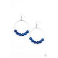 Oversized lapis lazuli stones slide along the bottom of a dainty silver hoop, creating an earthy centerpiece. Earring attaches to a standard fishhook fitting.