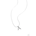 A row of glistening white rhinestones encrusts along one side of a silver letter "A," hovering below the collar from a dainty silver chain for a sentimentally simple design. Features an adjustable clasp closure.