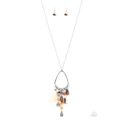 Infused with a multicolored collection of natural stone beads and pebbles, stacks of textured silver charms and mismatched wooden beads create earthy tassels at the bottom of a silver beaded teardrop frame. Enhanced with a shiny white threaded tassel, the whimsical fringe swings from the bottom of an extended silver chain for a seasonal finish. Features an adjustable clasp closure.