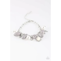 Gorgeous pearls, luminescent gray beading, and a collection of shiny silver charms, including a bird and a feather, dance around the wrist in a whimsical fashion. Features an adjustable clasp closure.