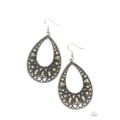 Dotted with dainty green rhinestone centers, studded silver heart frames fan out into a shiny silver teardrop frame for a lovable look. Earring attaches to a standard fishhook fitting.