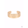 The phases of the moon are engraved across the front of a thick, shiny, gold cuff, creating an effortlessly celestial statement piece.