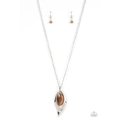 A glowing brown cat's eye stone swings between two leafy silver frames at the bottom of an extended silver chain. The bottom of the topmost leaf is dipped in glassy white rhinestones, adding a glitzy finish to the enchantingly layered pendant. Features an adjustable clasp closure.