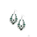 Airy loops of high-sheen silver, dotted with glittery emerald faceted gems, ripple out from an airy teardrop shape. Some curls feature solitaire oversized gems, while others feature a dainty collection resulting in a timeless, incandescent teardrop chandelier below the ear. Earring attaches to a standard fishhook fitting.