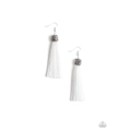 Encrusted in row after row of hematite rhinestones, a glittery gunmetal bead gives way to a plume of shiny white thread for an elegantly tasseled look. Earring attaches to a standard fishhook fitting.