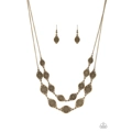 Featuring ornate brass centers, marquise shaped frames link into two rows below the collar for a rustic look. Features an adjustable clasp closure.