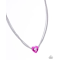 Infused along a collection of classic silver chains that twist below the neckline, a pronged cubic zirconia heart glistens atop the center of an electric pink-painted heart frame for a heartfelt display. Features an adjustable clasp closure.