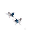 Silver butterflies are brought to life with brilliant blue gems forming half of their wings. The faceted gems shimmer with every turn, while delicately sculpted silver frames define their elegant other half. These post earrings add a whimsical yet refined pop of sparkle to any look. Earrings attach to a standard post fitting.