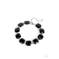 Featuring radiant cuts, glittery black rhinestones sit atop silver frames as they delicately link around the wrist for a mind-blowing brilliance. Features an adjustable clasp closure.