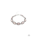 Featuring glassy pink stone centers, dainty silver frames link around the wrist for a seasonal look. Features an adjustable clasp closure.