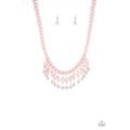 Pearly pink teardrop beads link with classic pink pearls as they drip from a timeless strand of pink pearls. Sprinkled with dainty crystal-like accents, the refined fringe cascades below the collar for a glamorous finish. Features an adjustable clasp closure.