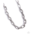 Wide hammered silver links alternate with double sets of shiny silver links as they connect across the collar for an edgy industrial effect. Features an adjustable clasp closure.